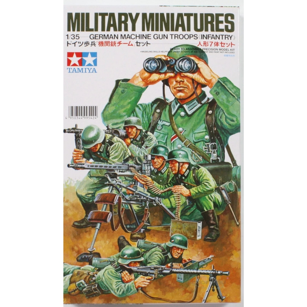 Este es un kit de ensamblaje de modelo de plástico a escala 1/35 que representa a soldados alemanes de la Segunda Guerra Mundial con ametralladoras MG34 y MG42. ★Incluye piezas para hacer tres equipos diferentes de artillero y cargador, además de un comandante con binoculares para siete figuras en total.