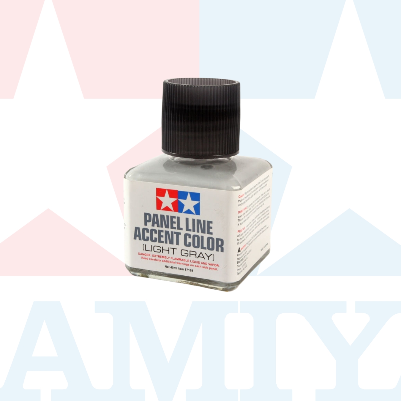 El Panel Line Accent Color Light Gray de Tamiya es una pintura tipo wash (lavado) lista para usarse, pensada para resaltar líneas de panel y detalles muy finos de la forma más sutil posible en modelos a escala.